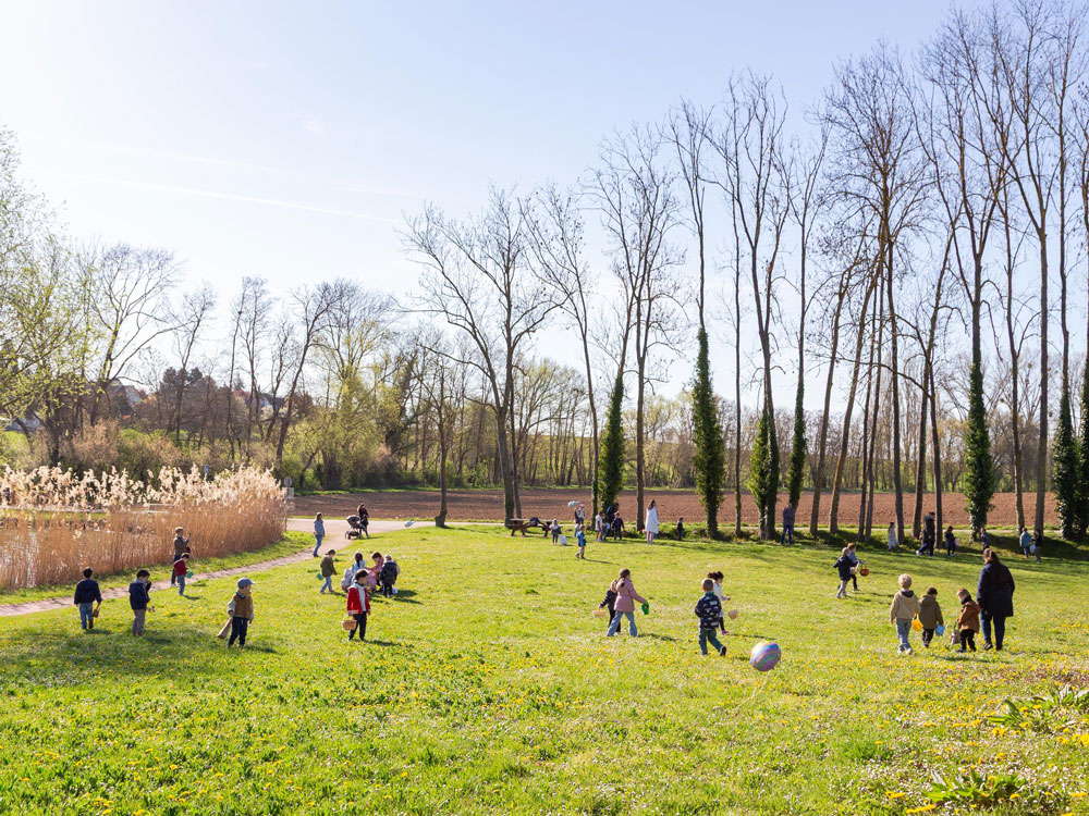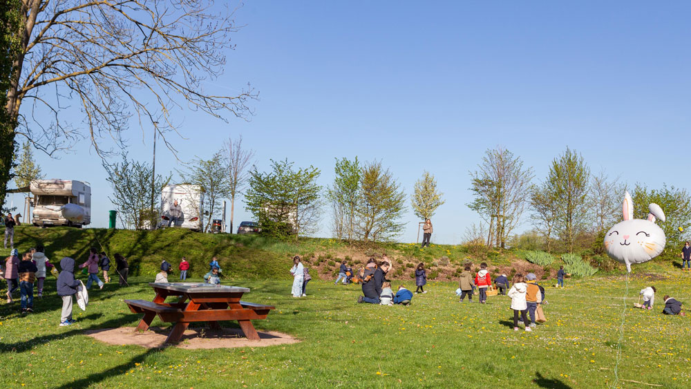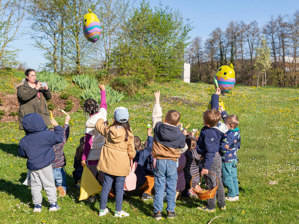 Les deux classes de maternelle de Mesdames HUMANN et CANN se sont rendues à l’étang de Wiwersheim afin de chercher des œufs de toutes tailles et couleurs, mais aussi des carottes ainsi que des petits poussins qui s’étaient cachés dans le parc.