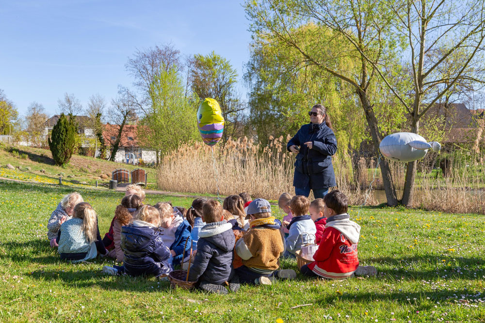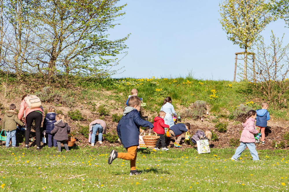 Les deux classes de maternelle de Mesdames HUMANN et CANN se sont rendues à l’étang de Wiwersheim afin de chercher des œufs de toutes tailles et couleurs, mais aussi des carottes ainsi que des petits poussins qui s’étaient cachés dans le parc.